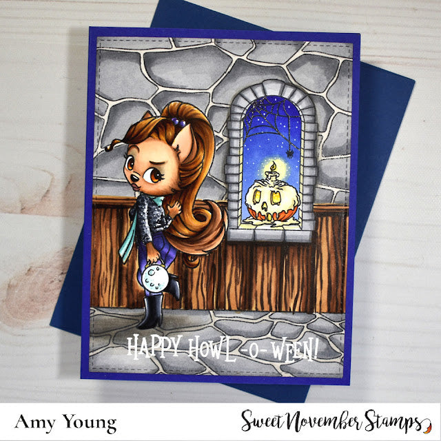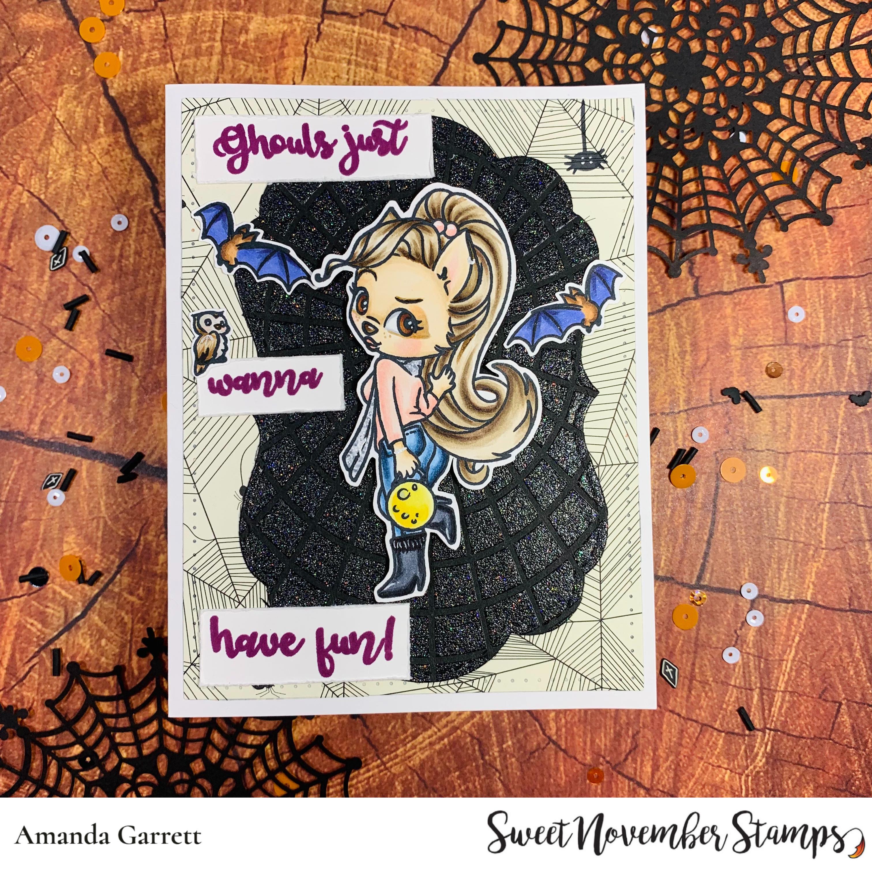 This 4x8 photopolymer stamp set includes 3 main image characters (a vampire, a werewolf and a ghost), 1 Scary Squishy puppy dog, 2 bat phones, and a sentiment: