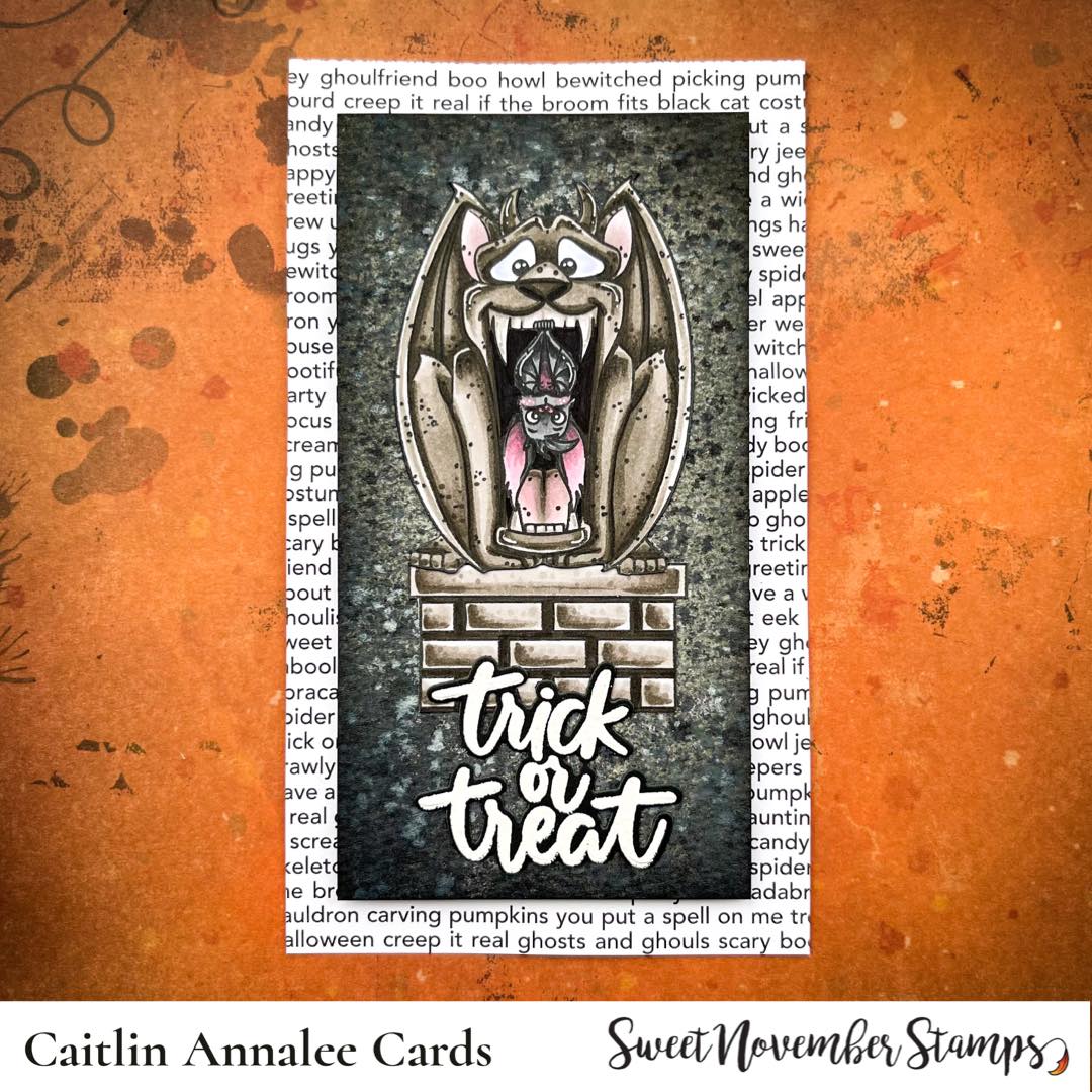 This 4×6 photopolymer stamp set includes 3 gargoyles, 2 individual rats, a candy corn, a stone pedestal and 1 sentiment: